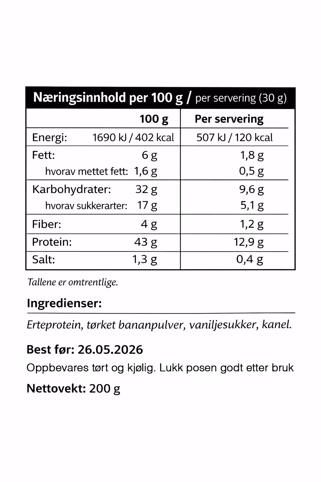 Banan proteinpulver - Limited Edition 199 NOK Størrelse 200 gram På lager Legg i handlekurv Produktbeskrivning Tilbakemeldinger